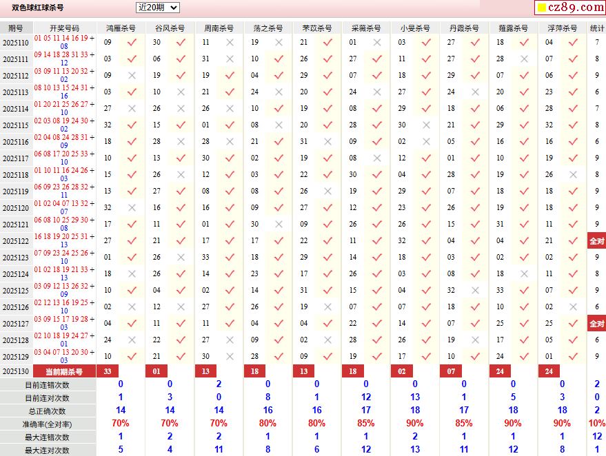 > 130期彩票专家双色球杀红蓝推荐汇总